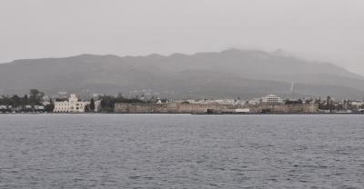 Die Insel empfing uns mit Freudentränen. Die griechischen Grenzer waren nicht die schnellsten und liessen uns erst einmal im Regen stehen. Danach ging es ins Hotel, das direkt am Hafen und gegenüber der Hafenfestung liegt.